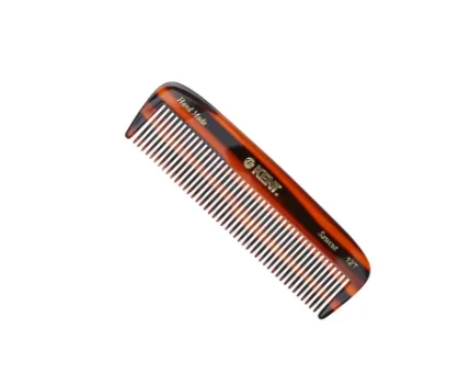 Грубий кишеньковий гребінець ручної роботи розміром 139 мм виготовляється з великих листів ацетату целюлози. Цей матеріал тактильний, гнучкий і міцний. Гребінці Kent мають заокруглені зубці, які забезпечують плавну та зручну роботу, без зусиль ковзають по волоссю, не дряпаючи та не пошкоджуючи волосся чи шкіру голови. Підходить для розчісування вологого або сухого густого волосся.