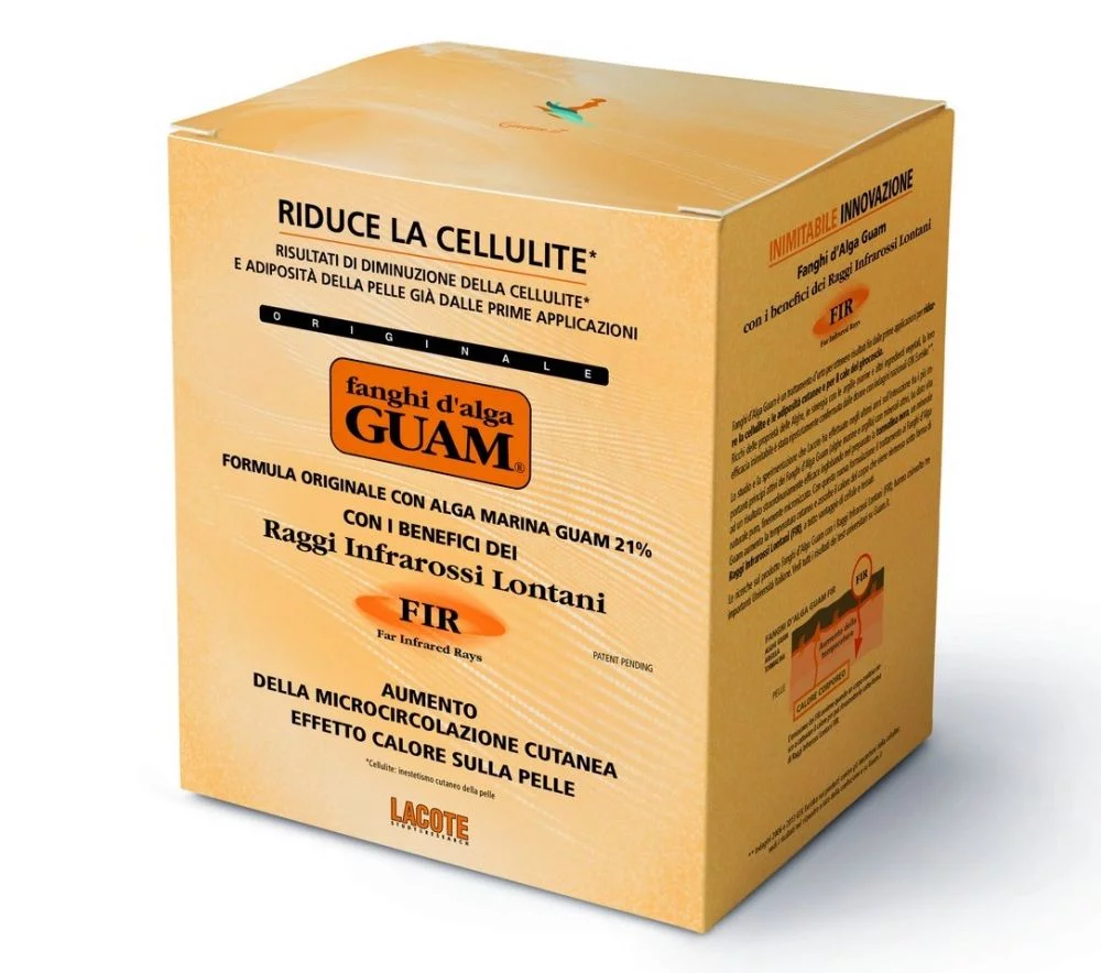 Антицеллюлитная маска из морских водорослей GUAM FIR с разогревающим действием Fangi d’Alga GUAM® FIR (seaweed mud) – инновационное изобретение. В новой версии знаменитые антицеллюлитные маски GUAM, неподдающиеся имитации, объединены с действием длинноволнового инфракрасного излучения FIR (Far Infrared Rays)! Имеет антицеллюлитное действие – способствует уменьшению подкожной жировой прослойки – способствует уменьшению объема бедер.