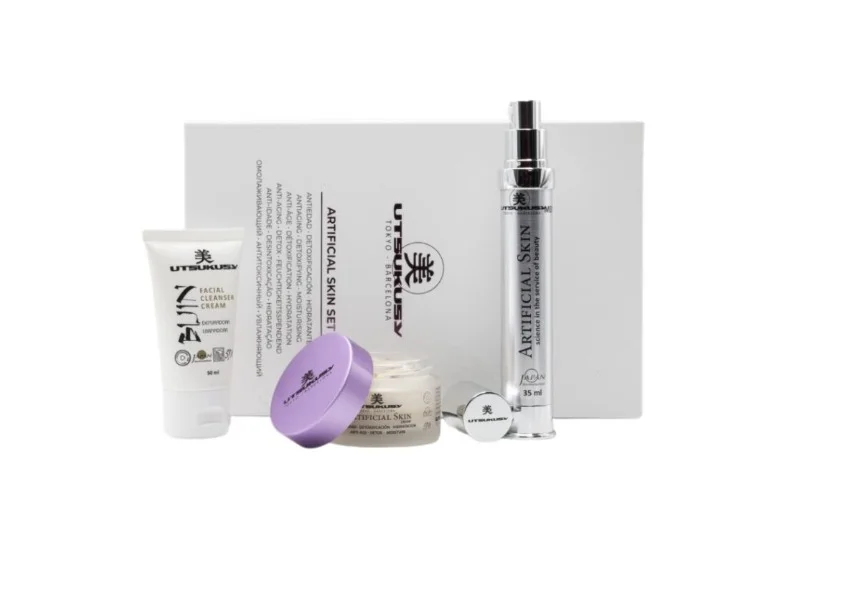 UTSUKUSY Artificial Skin Set — это комплексный антивозрастной уход, созданный для многоуровневого восстановления кожи. Он обеспечивает мгновенное увлажнение, видимое разглаживание морщин и мощную защиту от факторов преждевременного старения. Продукты набора способствуют укреплению кожного барьера, стимулируют выработку коллагена и способствуют выравниванию текстуры и тона. Набор подходит для дневного и ночного ухода, обеспечивая коже сияние, гладкость и упругость.