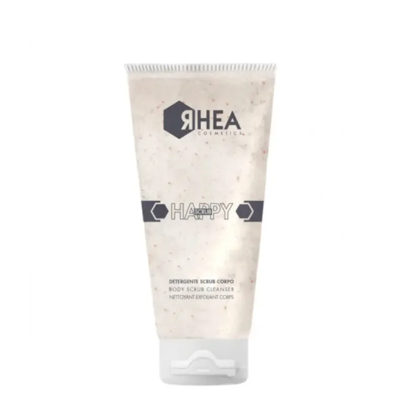 В косметических лабораториях Rhea выпускается очищающее средство – скраб для тела HappyScrub, который благодаря своей пенистой, мягкой и жемчужной текстуре, ванильным, фруктовым и гурманским нотам, а также стволовым клеткам каннабиса стимулирует выработку окситоцина и заботится о всестороннем оздоровлении кожи тела.
