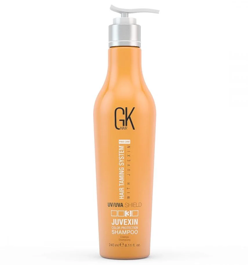 Шампунь для фарбованого волосся GKhair UV/UVA Shield Color Protection Shampoo одна з основних функцій цього шампуню — захист від УФ-променів, а саме шкідливих сонячних променів, які зазвичай викликають сухість та переріз волосся.