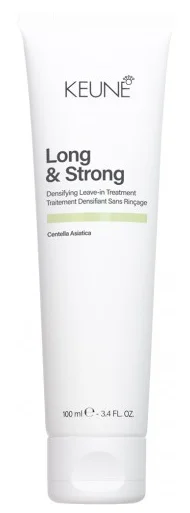 Keune Long & Strong Densifying Leave-In Treatment — це легкий несмивний догляд, який укріплює волосся від коренів до кінчиків, активізує шкіру голови та поступово робить пасма густішими. Формула забезпечує термозахист до 230°C, що дозволяє безпечно використовувати фен та стайлери. Засіб швидко вбирається, насичує волосся активними компонентами та дарує йому щільність, еластичність і доглянутий вигляд. У складі — біоміметичний пептид для зменшення випадіння та стимуляції росту, азійська центелла для захисту шкіри голови та комплекс Marine Density Infusion, який укріплює фолікули й структуру волосся. Не містить сульфатів, парабенів і силіконів.