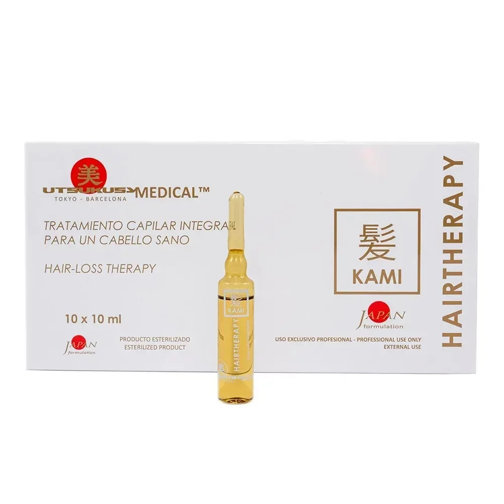 Utsukusy Kami Hair-loss Therapy — комплексний засіб для здоров'я волосся. Сприяє покращенню стану волосся та шкіри голови. Засіб розроблено для стимуляції росту існуючого волосся, а також для запобігання та уповільнення їхнього випадіння. Активні компоненти препарату впливають на волосяні фолікули, сприяючи появі нових волосин. Регулярне застосування Utsukusy Kami Vials допомагає збільшити густоту волосся, надати їм додаткову міцність та об'єм. У результаті використання засобу волосся набуває більш здорового вигляду та природного блиску. Однією з важливих властивостей препарату є здатність активізувати кровообіг у шкірі голови, що позитивно впливає на загальний стан волосся.