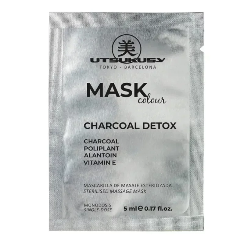 Utsukusy Black Detox Mask — стерильна масажна маска з лінійки Color Mask, наділена загоювальною та заспокійливою дією. Це засіб особливо ефективний для зменшення слідів акне та підходить для всіх типів шкіри. Відмінна особливість маски — зміна кольору з білого на чорний у процесі масажу, коли відбувається руйнування мікрокапсул. Такий візуальний ефект дозволяє контролювати процес нанесення та рівномірність розподілу активних компонентів по шкірі.