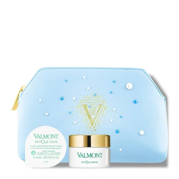 Дія: у період вікових змін нестача кисню в клітинах епідермісу може призвести до втрати пружності та еластичності шкіри, вплинути на появу зморшок та пігментних плям. Швейцарська компанія Valmont шляхом унікальних інноваційних технологій та численних досліджень у галузі антиейджингової косметології розробила ексклюзивний крем з детокс-ефектом DetO2X Cream, який збагатить вашу шкіру молекулами кисню, стимулюючи тим самим процеси внутрішньоклітинного очищення та омолодження обличчя. Киснева пухирчаста маска Детокс Пак інтенсивно збагачує шкіру киснем, глибоко очищає шкіру обличчя, а також стимулює оновлення клітин. Завдяки ексклюзивному коктейлю активних інгредієнтів маска тонізує, освіжає шкіру, покращує колір обличчя, робить його здоровим та сяючим. При нанесенні киснева маска перетворюється на піну з міхуровим ефектом.