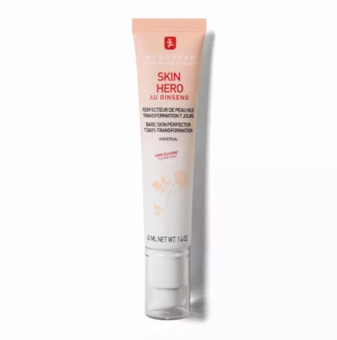 Відновлюючий крем для обличчя Skin Hero від корейського бренду професійної косметики Erborian забезпечує шкірі рівномірний тон, глибоко зволожує і живить її великою кількістю корисних мікроелементів. Це універсальний крем-гель для кожного покриву всіх типів. Ультралегка консистенція цього кремового мусу створює невагому вуаль на поверхні шкірного покриву. Матуючі властивості Skin Hero виявляються в інтенсивному вирівнюванні тону шкіри, легкому пудровому фініші після використання. Крем коригує недосконалості, звужує пори, розгладжує тонкі лінії та позбавляє обличчя жирного блиску. Формула кремового мусу збагачена рослинними екстрактами женьшеню, лакриці, а також гіалуроновою кислотою та гліцерином. Молекули активних компонентів миттєво проникають у поверхневі та глибинні шари епідермісу, забезпечуючи клітинам глибоке живлення та інтенсивне зволоження. Відлущувальні ензимиу складі тонізують, розгладжують і пом'якшують структуру епідермісу, нейтралізують з поверхні шкірного покриву ороговілі клітини та зовнішні забруднення. Гіалуронова кислота ефективно утримує в клітинах необхідну кількість рідини, тим самим залишаючи шкіру зволоженою протягом 24 годин. В результаті регулярного застосування Ерборіан Skin Hero вже через тиждень ви помітите, що шкіра стає більш гладкою та шовковистою на дотик без яскраво виражених нерівностей та недосконалостей. Основні властивості Skin Hero Erborian: глибоко живить та інтенсивно зволожує шкірний покрив; коригує колір, вирівнює тон шкіри; розгладжує, пом'якшує, надає еластичність структурі епідермісу; звужує пори, маскує недосконалості, зменшує видимість ліній зневоднення; відлущує ороговілі клітини, абсорбує зовнішні забруднення; тонізує, заспокоює, знімає запалення, роздратування та почервоніння зповерхні шкірного покриву; залишає після вбирання легкий матовий фініш, що перекриває жирний блиск; стимулює процеси внутрішньоклітинного метаболізму, гідратації та клітинної регенерації; сприяє оновленню шкірного покриву: результати помітні після тижня регулярного використання крему; створює невагоме покриття, що оберігає дерму від негативного впливу зовнішніх подразників; захищає від УФ-випромінювання; робить шкіру гладкою, ніжною та шовковистою на дотик; підходить для кожного покриву всіх типів; не містить силіконів у складі. Активні компоненти у складі Екстракт білого женьшеню інтенсивно зволожує шкірний покрив, має антиоксидантні властивості. Він нейтралізує активність вільних радикалів, зупиняє окислювальні процеси у клітинах епідермісу, тонізує, розгладжує структуру дерми. Гіалуронова кислота високої молекулярної маси —агент-зволожувач, який насичує дерму необхідною кількістю рідини, зміцнює міжклітинні сполуки та бар'єрні функції гідроліпідного шару, ефективно утримує вологу у клітинах. Вона розгладжує, пом'якшує, надає еластичність та пружність структурі епідермісу. Гліцерин має потужні зволожуючі властивості, тонізує і робить шкірний покрив шовковистим на дотик. Відлущують ензими сприяють комплексному очищенню поверхні шкірного покриву від лущення і зовнішніх забруднень. Екстракт лакриці (кореня солодки) має антибактеріальні та протизапальні властивості. Спосіб застосування Використовуйте крем Skin Hero Ерборіан як засіб для щоденного догляду за шкірою всіх типів. Нанос