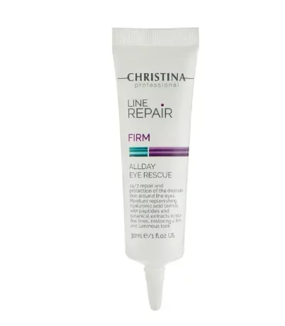 Крем для шкіри навколо очей Christina Line Repair Firm Allday Eye Rescue Цілодобовий порятунок - це засіб з легкою невагомою текстурою, що захищає та заспокоює ніжну шкіру навколо очей. Якісно зволожує, усуває темні кола, мінімізує набряки та забезпечує антиоксидантний захист. А також ефективно розгладжує існуючі зморшки та запобігає появі нових.