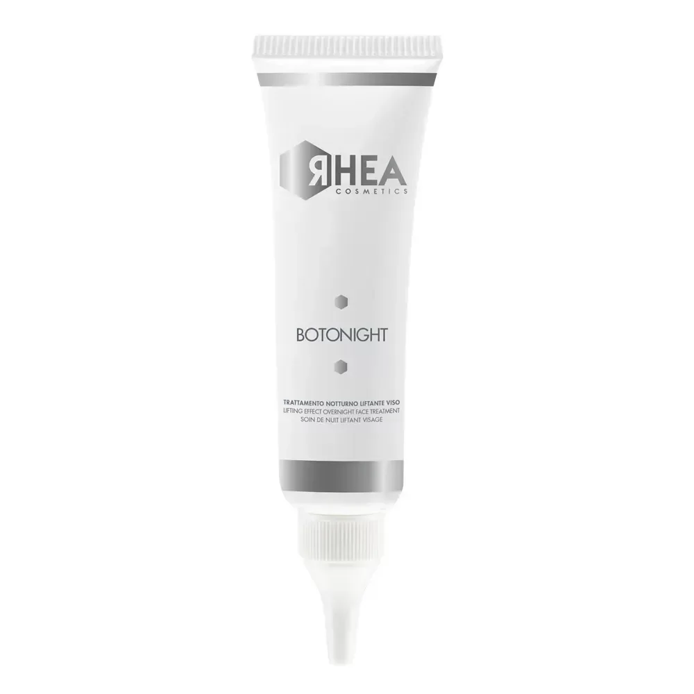 Нічний ліфтинг-догляд Rhea Rhea BotoNight — маска з сильним ефектом ліфтингу, яка помітно покращує овал обличчя. Засіб надає шкірі додаткової еластичності й тонусу, роблячи її зранку свіжішою, пружнішою і помітно молодшою. Формула продукту розроблена таким чином, щоб активні інгредієнти впливали на шкіру, стимулюючи її неврологічні процеси.