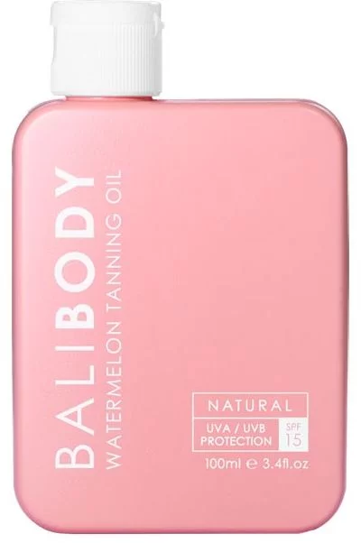 Освіжаюча олія для засмаги містить органічну олію з насіння кавуна, наповнену мінералами та антиоксидантами для живлення та зволоження шкіри.