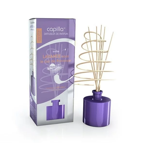 Органический интерьерный ароматизатор воздуха «Лаванда под небом Прованса» Terre d’Oc Fragrance Diffuser представляет собой набор из флакона с эфирными маслами и бамбуковых палочек. Он равномерно наполняет пространство сочными нотами свежескошенной травы, листьев ивы и полевых цветов, грациозно дополненных звучанием лаванды. Его волшебный аромат словно переносит на прогулку по прованским лавандовым полям, залитым ласковыми солнечными лучами. Натуральный ароматизатор воздуха Terre d’Oc Fragrance Diffuser Lavender under a Provencal Sky поможет создать атмосферу уюта и комфорта, подарит ощущение внутренней гармонии, снимет усталость и поднимет настроение. Кроме того, он эффективно нейтрализует неприятные запахи и гармонично дополнит любой интерьер. Секрет работы диффузора кроется в капиллярном строении бамбуковых палочек: парфюмированная жидкость наполняет помещение ароматом, поднимаясь из бутылочки до кончиков прутьев и испаряясь с их поверхности.