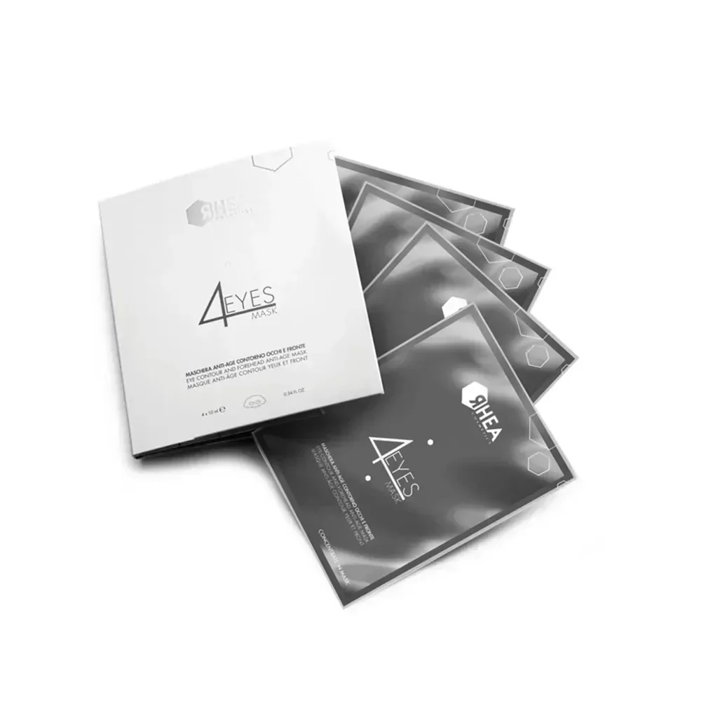 Омолаживающая маска для контура глаз и области лба Rhea 4Eyes Mask, обеспечивает мгновенное омолаживающее действие. Разглаживает текстуру, повышает упругость, придаёт сияние. Уменьшает проницаемость капилляров, обеспечивает оптимальную лимфатическую и венозную циркуляцию, улучшает оксигенацию тканей, повышает тонус и упругость контура глаз, уменьшает мешки и тёмные круги. Тканевая маска, пропитана раствором anti-age ингредиентов, антиоксидантов, успокаивающих и увлажняющих компонентов. Благодаря своей консистенции она идеально распределяется по коже, обеспечивая равномерное и глубокое впитывание активных ингредиентов.