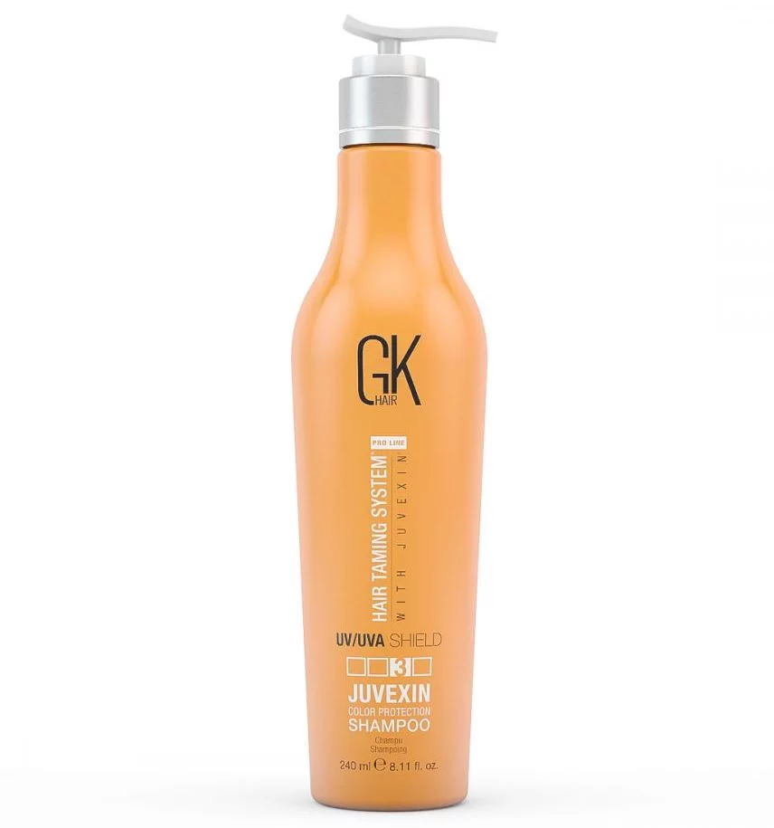 Шампунь для окрашенных волос GKhair UV/UVA Shield Color Protection Shampoo одна из основных функций этого шампуня — защита от УФ-лучей, а именно вредных солнечных лучей, которые обычно вызывают сухость и сечение волос.