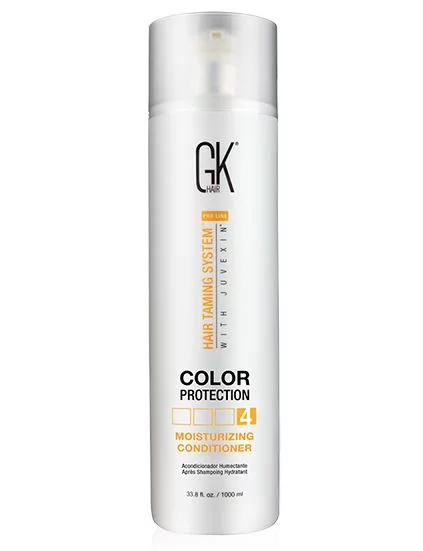 Увлажняющий кондиционер защита цвета GKhair Moisturizing Conditioner Color Protection  питает и увлажняет сухие ломкие волосы. С помощью комплекса глубокого увлажнения, обогащенного из натуральными маслами семян, натуральными растительными экстрактами и экстрактами природного зерна  этот увлажняющий кондиционер обеспечивает естественное увлажнение и укрепление волос, защищая их от повреждений. Juvexin, кератиновая антивозрастная белковая смесь, помогает вернуть волосам естественное состояние.