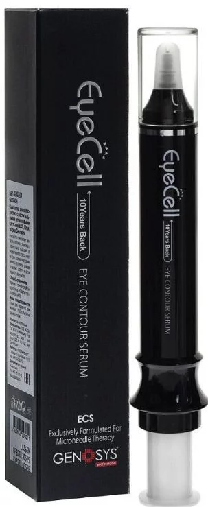 Сироватка з рослинними стовбуровими клітинами та ЄС-пептидами для догляду за областю навколо очей. При комбінованому використанні зі спеціальним ролером GENOSYS для очей засіб ефективно бореться з ознаками старіння, темними колами та набряками.