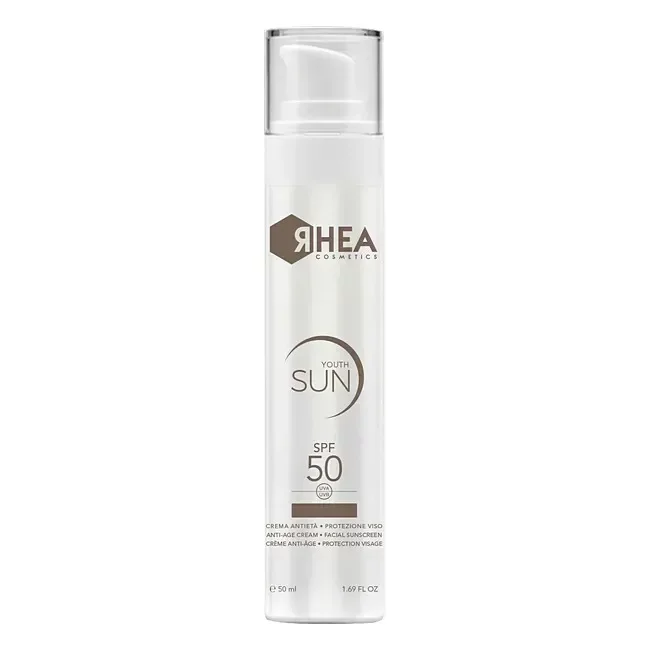 Сонцезахисний антивіковий крем Rhea YouthSun SPF50 Anti-Age Cream Facial Sunscreen ефективно протистоїть фотостарінню, захищає шкіру від шкідливих сонячних променів і запобігає появі зморшок і пігментних плям. Глибоко зволожує, заспокоює та мінімізує запалення, що провокується ІЧ-променями. Зменшує вираженість процесів окислення, підходить навіть для чутливої шкіри.