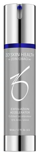 Лосьйон ZO Skin Health Exfoliation Accelerator призначений для пошкодженої ультрафіолетом шкіри, з нерівномірною текстурою та схильністю до появи акне. Засіб містить унікальний гліколевий та молочний комплекси, які ефективно, але дбайливо відлущують ороговілий шар шкіри для оновлення її поверхні. Багата антиоксидантними компонентами формула допомагає заспокоїти та загоєти подразнену та пошкоджену шкіру.