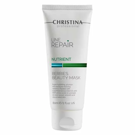 Зволожуюча маска для обличчя Christina Line Repair Nutrient Berries Beauty Mask з ягодами відновлює баланс, багата на поживні речовини. Високотехнологічні інгредієнти підвищують еластичність шкіри, зміцнюють захисний бар'єр та уповільнюють старіння. Лікує сухість та відновлює еластичність, запобігає еритемі, сприяючи регенерації клітин та зменшенню глибини зморшок, освітлює.